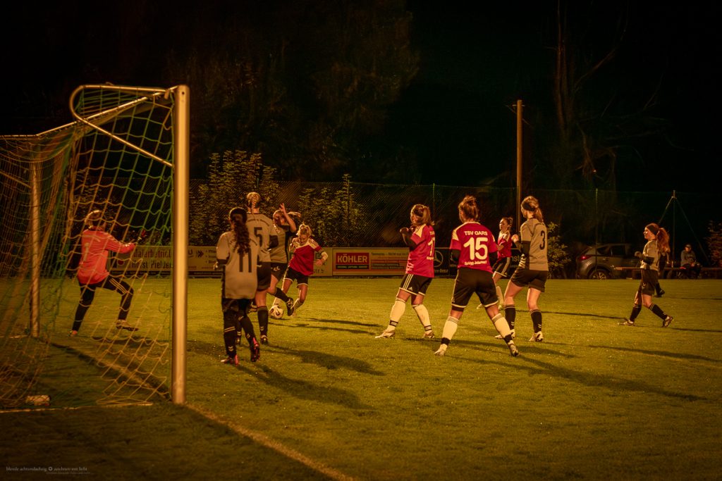 Die Heimdamen starteten furios, schnelles Kombinationsspiel, supergenaue Ballpassagen, fast minütlich beste Eischussmöglichkeiten. Die Abwehrreihen der SG Engelsberg/Garching waren gehörig überfordert, die sehr starke Torfrau Christina Auer konnte nur durch mehrere Glanzparaden und beherzten Einsatz ihren Kasten sauber halten. Eine kurze Vorwärtsbewegung der Göbl-Elf nutzte die SG Jettenbach/Gars in der 14. Spielminute gnadenlos zur 1:0 Führung. Die Sturmreihen hatten mehr Raum, Kapitänin Lisa Winterer spielte Katharina Schmidinger den Ball perfekt in den Lauf, die herausstürzende Gästekeeperin konnte den Einschlag nicht verhindern.  Die heimischen Spielerinnen setzten ihre Angriffsbemühungen ohne Unterbrechung fort, belohnt durch mehrmaligen Szenenapplaus der Fans, die herausgespielten Tormöglichkeiten wurden teilweise unglücklich vergeben. Die Edeltechnikerin Lisa Winterer war es dann, die zum mittlerweile hochverdienten 2:0 einnetzen konnte. Ein Eckball kam über Umwegen am Fünfmeterraum auf ihren Fuß, eine Abwehrspielerin ließ sie ins Leere laufen, die Torhüterin konnte nur noch dem Ball hinterhersehen. Der Pfiff des hervorragenden Schiedsrichters Christoph Spitale beendete eine sehenswerte, teilweise hochklassige 1. Halbzeit, es dürfte auch vielen Zuschauern deutlich wärmer geworden sein, als das Thermometer anzeigte.