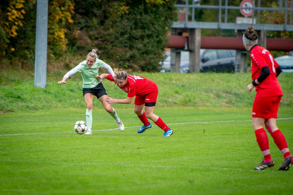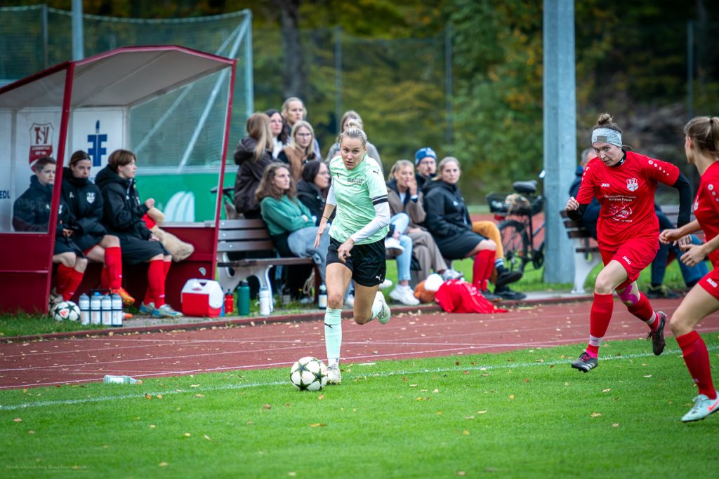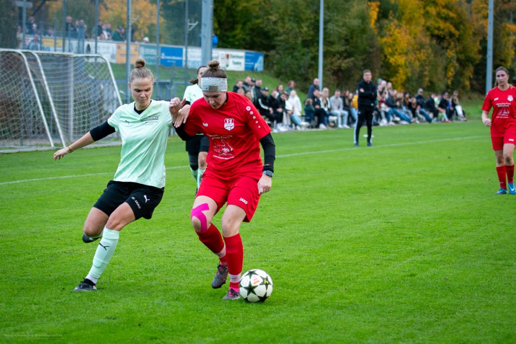 Klar war, dass die SG Jettenbach/Gars in Hälfte Zwei zulegen muss, um etwas zählbares mit nach Jettenbach nehmen zu können. Dass der Wille der Heimdamen ungebrochen ist, konnten die vielen Fans deutlich erkennen. Der Ausgleich zum 1:1 in der 55. Minute war zwischenzeitlich auch verdient. Einen 20-Meter Schuss konnte Christina Roß nicht festhalten, Lisa Maier staubte ab. Die enorm starke Lisa Winterer und ihr Team konnten sich jetzt mehr Spielanteile erkämpfen, in Minute 56 und 57 war die erneute Führung durchaus möglich. Eine kleine Kontermöglichkeit in der 62. Minute nutzten die heimischen Damen eiskalt, wiederum Lisa Maier konnte die Abwehr überlaufen und schloss zum 2:1 ab. Mit einer Niederlage wollten die Inndamen keineswegs aus dem Spiel gehen, aber das Tor von Tatjana Laufke schien wie vernagelt. Nach schöner Kombination lag zweimal der Ausgleich in der Luft, Lisa Winterers Schuss in der 63. Minute landete am Pfosten, eine Minute später klatschte das Drehgeschoß von Romina Weißenberger an die Unterkante der Querlatte. Mehrere Freistöße aus guten Entfernungen kamen auf das Gehäuse des TSV Altenmarkt, aber sie verfehlten äußerst knapp ihr Ziel oder die Torfrau konnte abwehren. Eine weitere Großchance (85.) wurde Katharina Schmidinger genommen, sie war bereits alleine auf dem Weg zum Tor, aber ein zweifelhafter Abseitspfiff vom guten Schiedsrichter Mehmet Aycicek nahm ihr eine sichere Ausgleichsmöglichkeit. Auch nach fünf Minuten Nachspielzeit gelang der SG Jettenbach/Gars kein weiteres Tor, die erste Saisonniederlage war somit besiegelt. Die Enttäuschung war natürlich nicht zu übersehen.