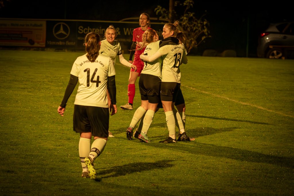 Die SG Jettenbach/Gars war gewarnt, die früheren Begegnungen waren alle kein Zuckerschlecken, das letzte Spiel wurde verloren und kostete vermutlich sogar die Meisterschaft. Trainer Helmut Laggerbauer hatte auch diesmal sein Team glänzend eingestellt, so dass die Heimdamen schon alle Fähigkeiten auf den Platz bringen mussten, um als Siegerinnen die drei Punkte in Jettenbach zu behalten.