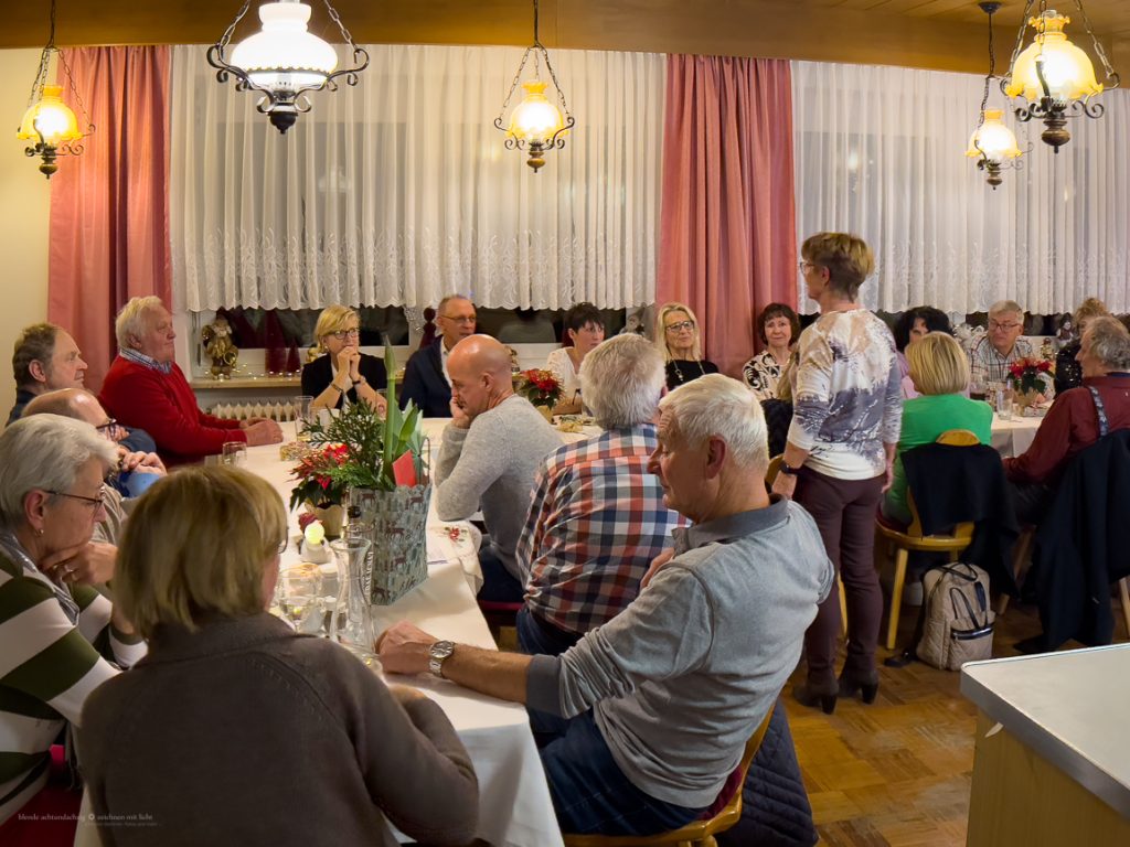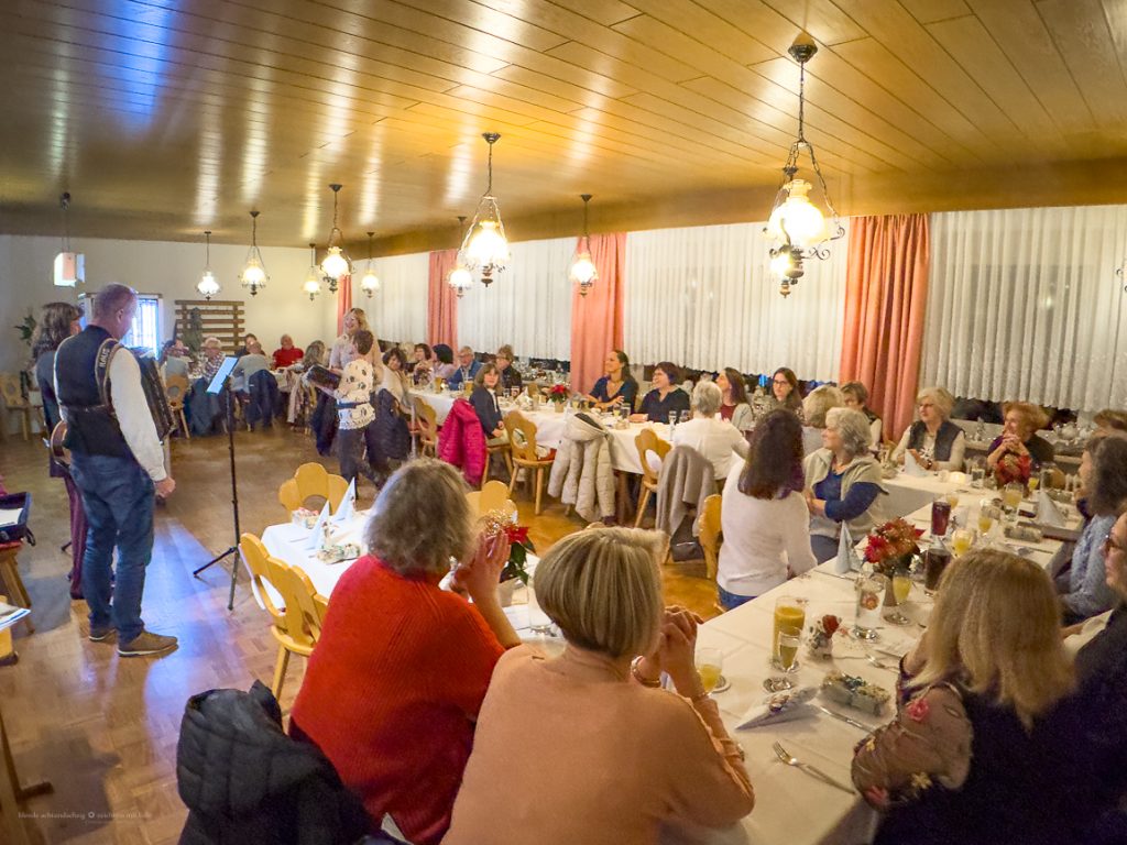 Mit feinen Tönen einer Engelsharfe und Klassikern der Weihnachtslieder feierte die Turnabteilung in der Bahnhofsgaststätte Grasser. Der Einladung unserer Abteilungsleiterin Gabriele Saller und Ihrer Führungscrew, waren 50 Turnerinnen und Turner gefolgt. Nach einem A-la-carte-Essen folgten Dankesworte an die Übungsleiter gerichtet. Für die musikalische Begleitung sorgten Beatrix Mang an der Gitarre und Sepp Mariel mit seiner „Ziach“. Extra einstudiert hatte Marina Saller zauberhafte Stücke auf Ihrer neuen Engelsharfe. Mit einer ordentlichen Portion Mut trug Sie, Marina, fehlerfrei ihr Erlerntes vor. Der Beifall war entsprechend. Ob traditionelle Weihnachtslieder oder in Stücken zum Mitsingen. Die Turnerriege ließ sich nicht lange bitten. Es war ein schöner vorweihnachtlicher Abend zum Einstimmen auf die bevorstehende Heilige Nacht.